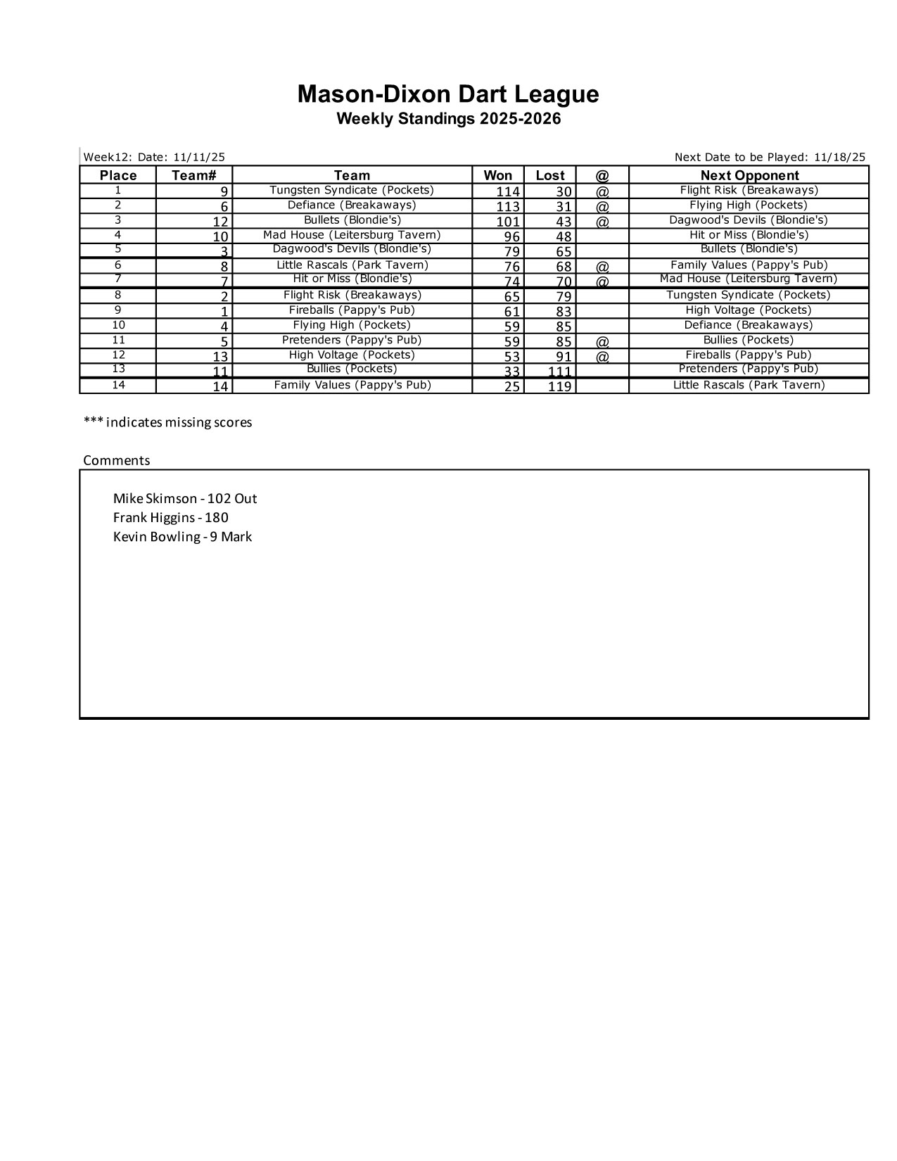 Week 11 Standings — HTML (easy load) or PDF (printer ready)