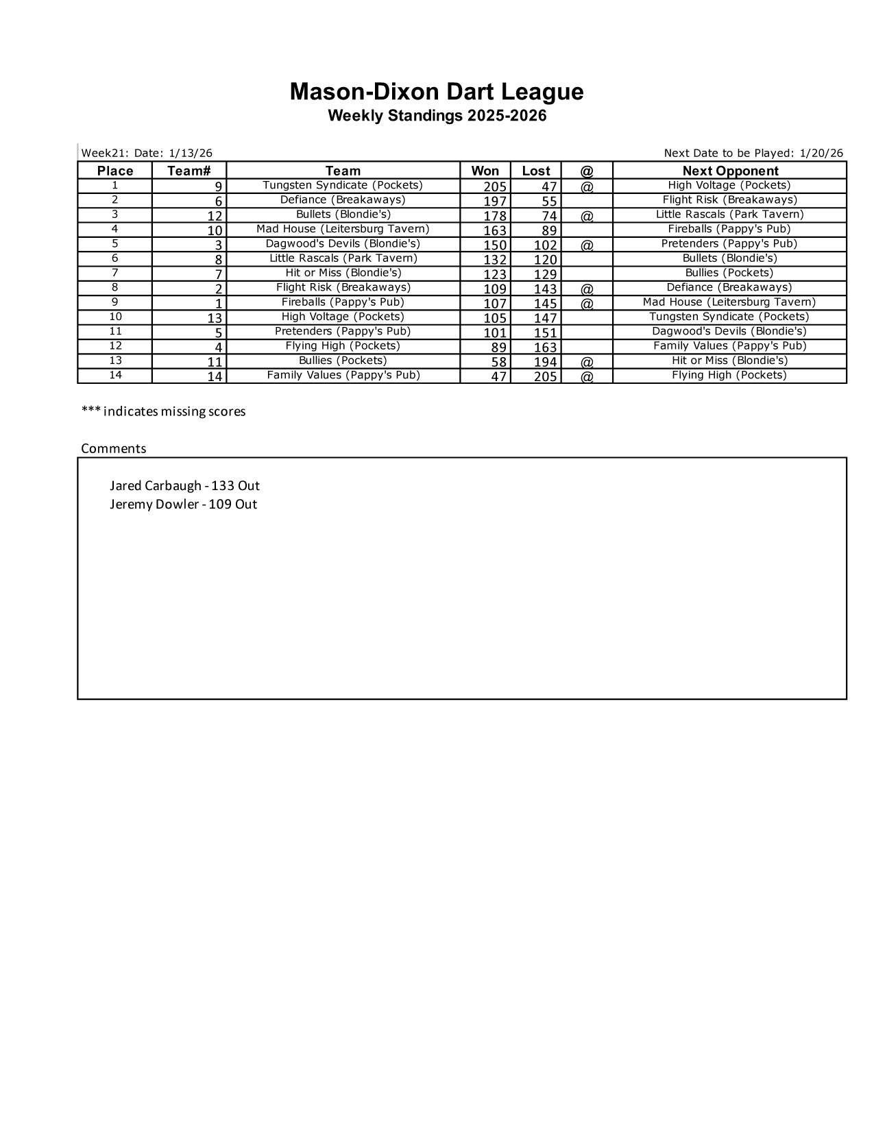 Week 21 Standings — HTML (easy load) or PDF (printer ready)